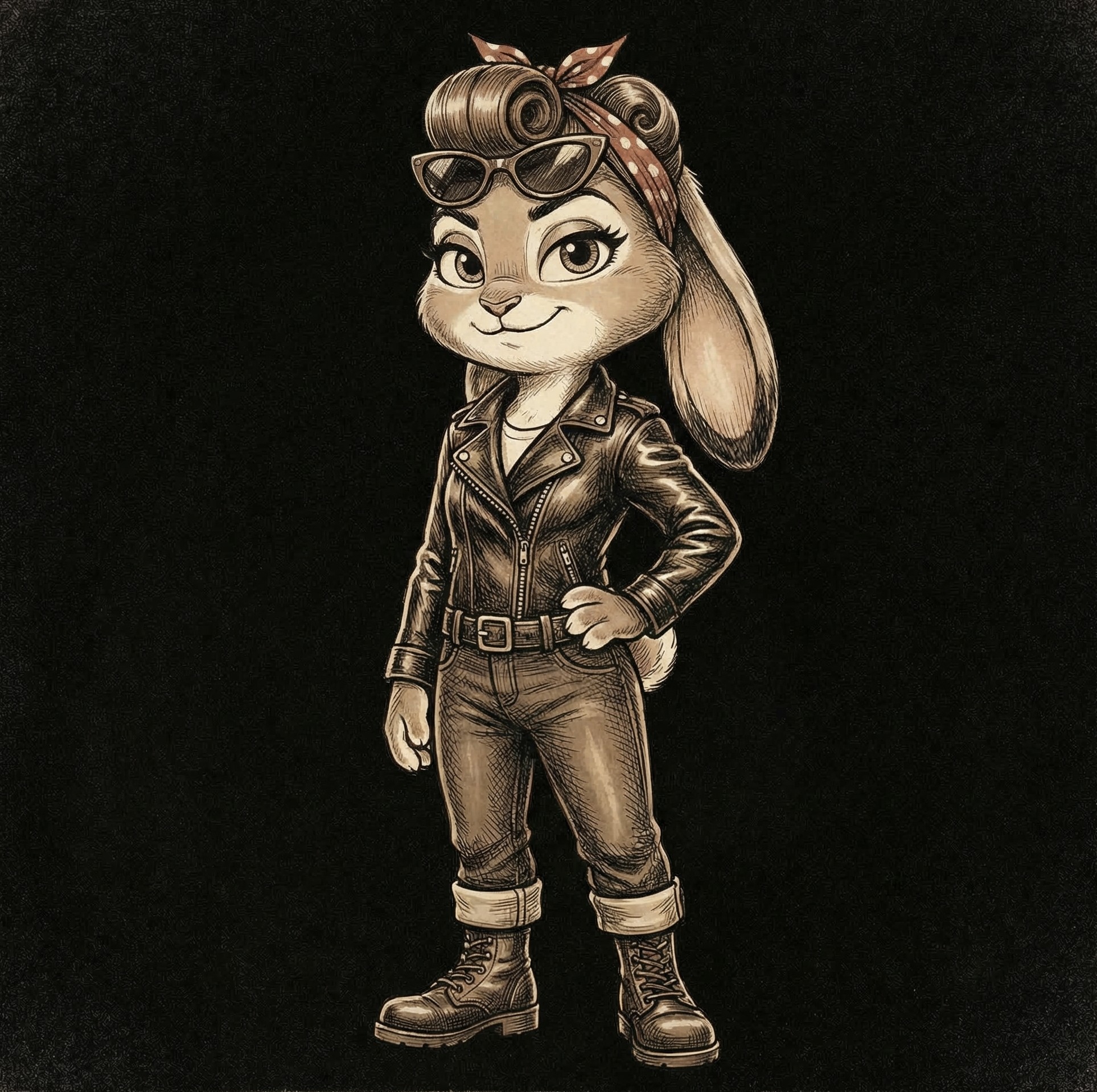 | Jacket | Black or brown leather, classic biker style |