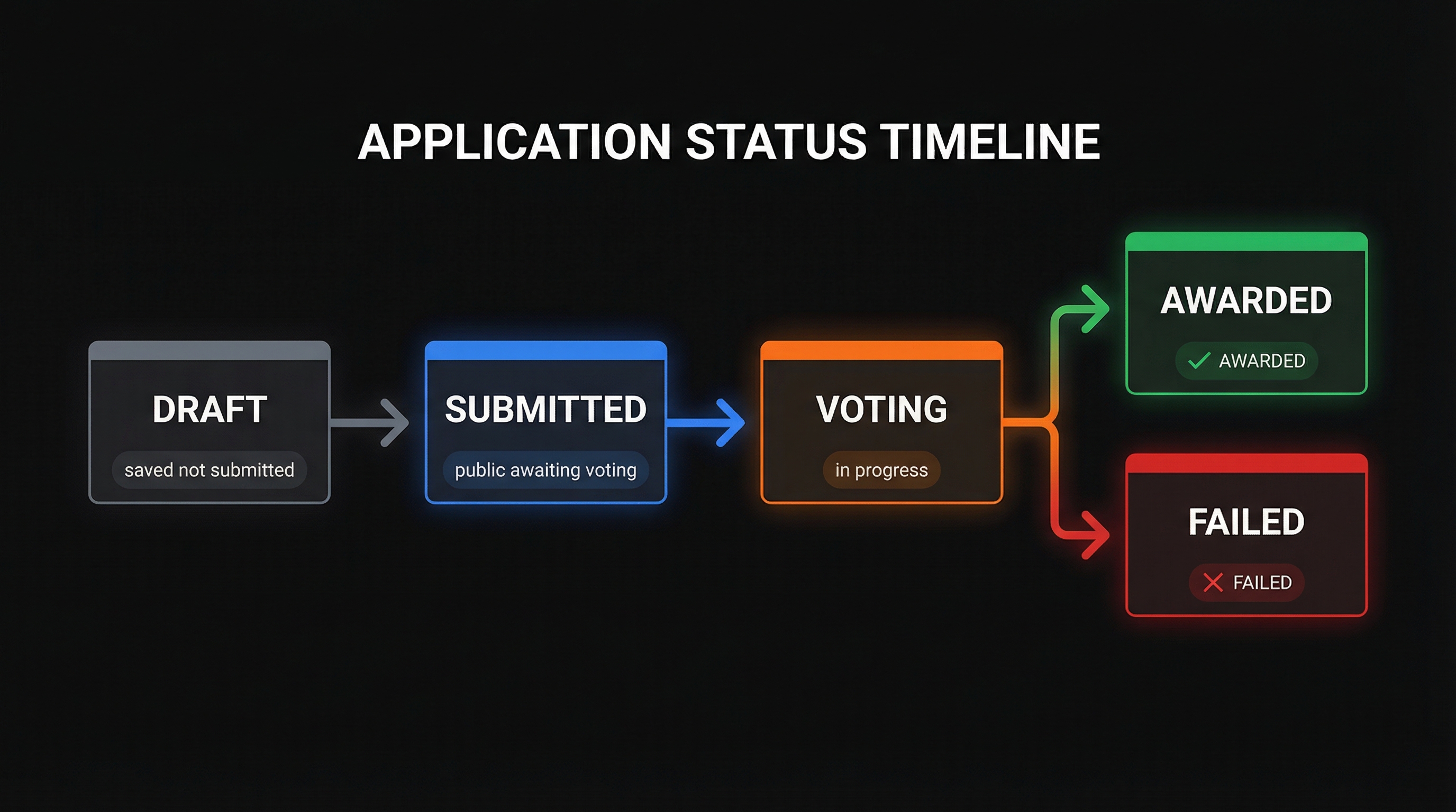 If you didn't win: Your status shows "Failed". Look at the vote breakdown (if its public). Did you get engagement but not enough? Or no votes at all? That feedback helps for next time.